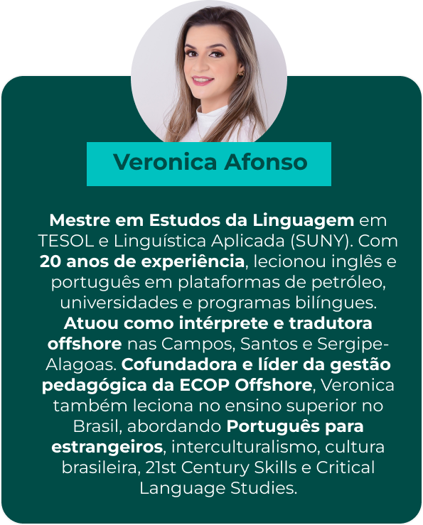 Publicado em Hugo ThurlerTrustindex verifica se a fonte original da avaliação é Google. Sobre a aula: foi minha primeira experiência com o conversation club e achei excelente a interação que os professores tem com os alunos e estou empolgado para as proximas aulas.Publicado em Leandro MussiTrustindex verifica se a fonte original da avaliação é Google. Formado em Técnico de Mecânica desde 2022 e o inglês sempre fez falta em minha vida profissional, até achar a ECOP, um curso de inglês totalmente técnico, depois desse achado tudo começou a mudar. Curso muito completo para área Petróleo & Gás na qual trabalhamos. Sem didática chata de ficar falando muito e ensinando pouco, são objetivos! Vão direto ao ponto e um ensinamento muito forte e excelente! A Marcella e a Verônica são pessoas sensacionais e sempre dispostas a nos ajudar quando necessitamos. Super recomendo o curso! Vão sem medo!!! #inglêsoffshore #ecopoffshorePublicado em Andre Luiz Balduino JuniorTrustindex verifica se a fonte original da avaliação é Google. Com o conversation club nós conseguimos aprender o "inglês real" de uma forma bem descontraída, pois podemos entender e nos fazer ser compreendidos através de um bate papo, com a mediação dos professores que nos dão o feedback de imediato.Publicado em Paulo de Oliveira SantosTrustindex verifica se a fonte original da avaliação é Google. Good morning guys! Sobre o feedback da aula de ontem: Gostaria de primeiramente agradecer a todos que participaram da live e da troca que tivemos e eu pude aprender bastante, aos professores que foram mega solícitos e pacientes conosco e que se pode perceber que tem uma dedicação ímpar para poder nos ajudar da melhor forma a entender e aprender um pouco mais, o curso em si é melhor ainda do que eu esperava, @William e @Marcella Pessanha são fora de série! Uma atenção e respeito aos alunos que pouco se vê no mercado, enfim quero ressaltar que é muito importante para todos nós, iniciantes ou não no idioma, essa troca e como falei anteriormente, o conversation Club tornou-se até de certa forma previsível, positivamente, tendo em vista o curso regular ser de uma excelência tamanha! Isso nos deixa, como alunos, com mais vontade ainda de aprender, obrigado pela dedicação conosco! Tenham uma excelente semana !Publicado em Cris LimaTrustindex verifica se a fonte original da avaliação é Google. Excelente curso! Ótima didática. Recomendo.Publicado em Giani Guerino PiazentiniTrustindex verifica se a fonte original da avaliação é Google. Estou muito feliz por ter encontrado a Ecop. Fica evidente a dedicação e o profissionalismo das professoras Verônica e Marcela que fazem um trabalho que merece chegar ao maior número possível de pessoas. Parabéns ECOPOFFSHORE!!!Publicado em Thiago AntunesTrustindex verifica se a fonte original da avaliação é Google. Muito bom !!!!Publicado em Isamara DantasTrustindex verifica se a fonte original da avaliação é Google. Otima